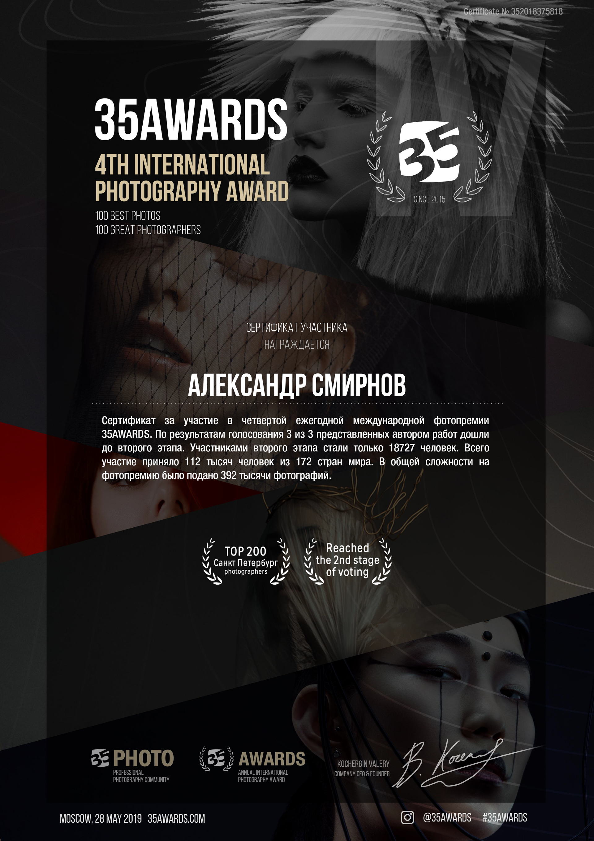 - Финалист MyWed Award в номинации «Love Story» и «Я — фотограф».